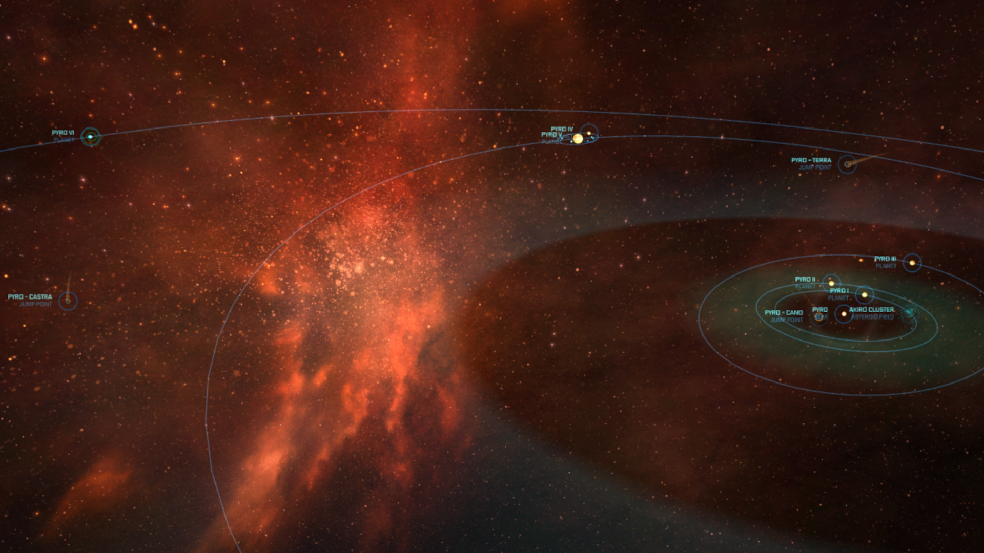 Le système Pyro est un système stellaire non affilié, sans planète habitable, connecté à 7 systèmes de l'UEE par des Jump Points.